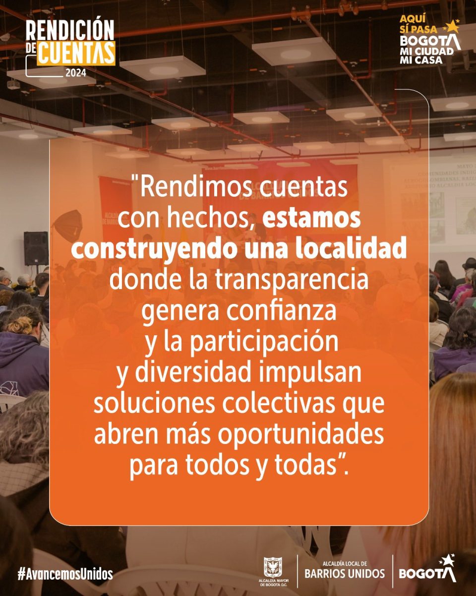 12 - LOCALIDAD DE BARRIOS UNIDOSRENDICIÓN DE CUENTAS VIGENCIA 2024 ALCALDÍA LOCAL DE BARRIOS UNIDOS by Darío Fernando Andrade Peinado26 abril, 202516 diciembre, 2025072 Share00 https://www.facebook.com/reel/1859508914990045 RENDICION DE CUENTAS VIGENCIA 2024 Views: 2